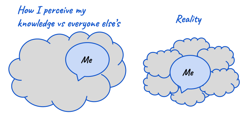 When it comes to mental health, our relationship with our inner critic can be a tricky one, especially for those who struggle with imposter syndrome. Imposter syndrome is a psychological phenomenon where individuals doubt their abilities and accomplishments and fear being exposed as a fraud. It can lead to feelings of inadequacy, and affects people across all demographics, industries, and levels of expertise. In fact, studies suggest that up to 70% of people experience imposter syndrome at some point in their lives. A popular depiction of imposter syndrome illustrates that most of us have a very inflated view of others knowledge and consistently downplay our own.