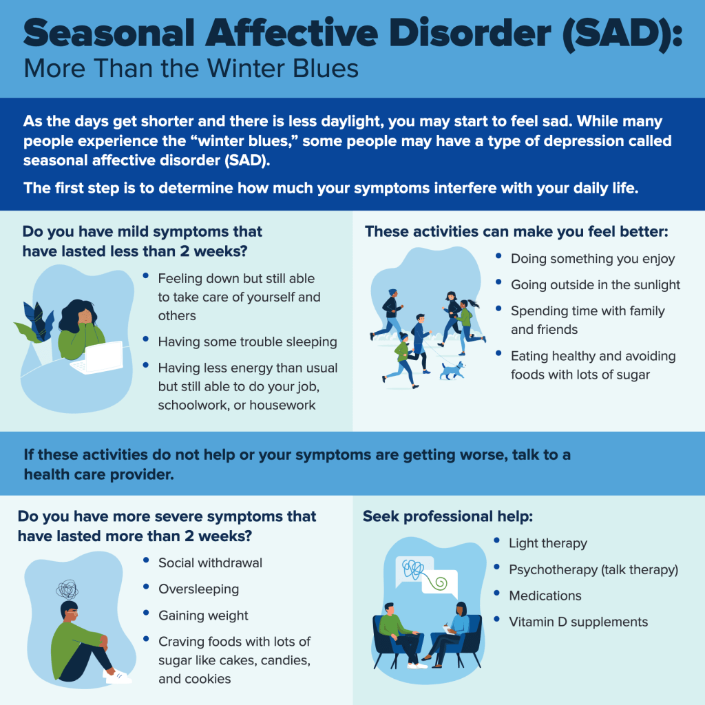 As winter unfolds, bringing with it shorter days and longer nights, many find themselves host to an unwelcome guest: Seasonal Affective Disorder (SAD). This condition goes beyond the common wintertime blues, manifesting as a type of depression that cyclically appears and fades as the seasons change. It’s not uncommon during these colder months for you or your team to feel an uncharacteristic downswing in mood—a sign that might point towards SAD rather than just a bad day.